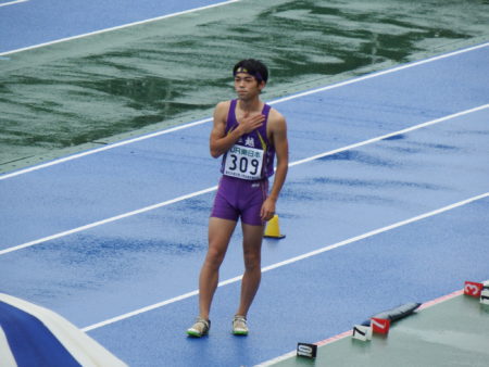 大学生や実業団のランナーが主に出場する男子一般100mにおいて、自己ベストタイの記録を出して高校生で唯一となる準決勝への進出を果たしました。