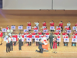 今年度の部長を務めた羽田さんは「早朝に登校して岩崎先生とミーティングを行い、朝練をする。授業が終わると豊田先生の指揮に合わせて演奏をする。そんな当たり前だと思っていた日々が消えた時、今まではなんて幸せだったのだろうと思った。自粛期間中、仲間と会いたい。早く一緒に演奏したいと思い続けた。今日、このステージで演奏できたことを先生方、先輩方、尽力いただいた関係者の皆さん、そして両親に感謝します」と挨拶しました。