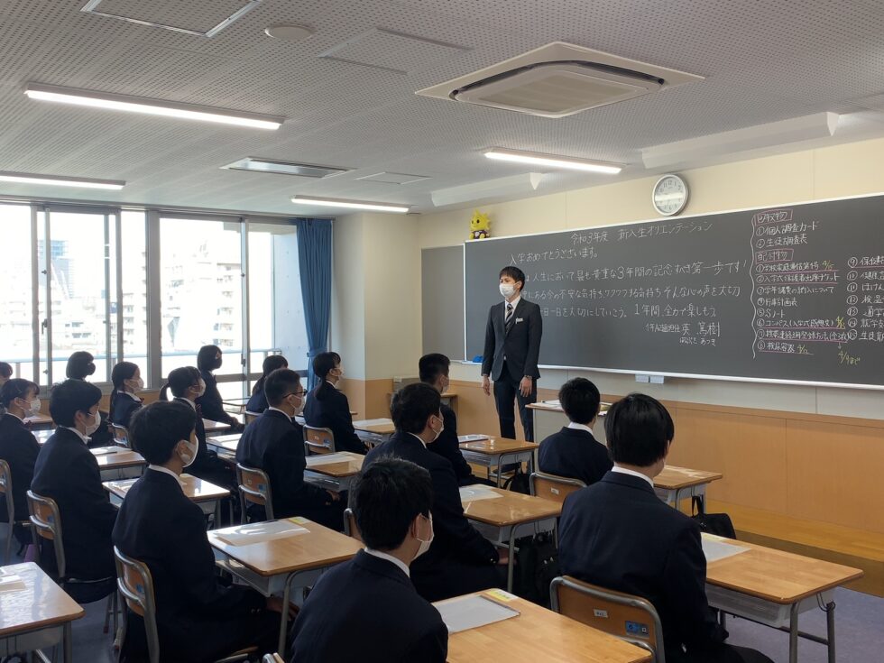 4月7日(水)、1年生のオリエンテーションを行いました。生徒たちは、真新しい制服に身を包んで初めての登校。少々、緊張した面持ちでした。