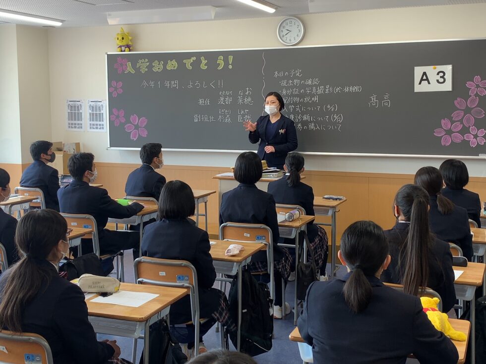 その後、教室へ移動。担任教諭の自己紹介、入学式について、証明写真撮影などを行い、下校となりました。