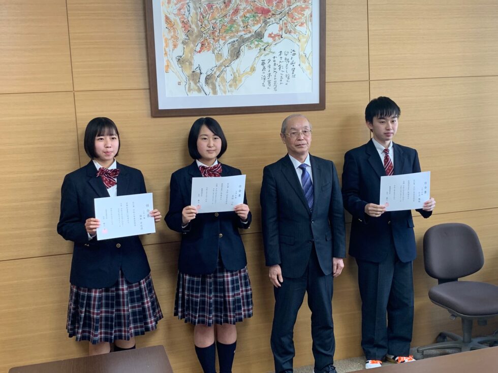 投票の結果、生徒会長に3年木村、副会長に3年永沼と2年福本が選ばれました。14日には任命式が行われ、勝又校長より任命書が手渡されました。