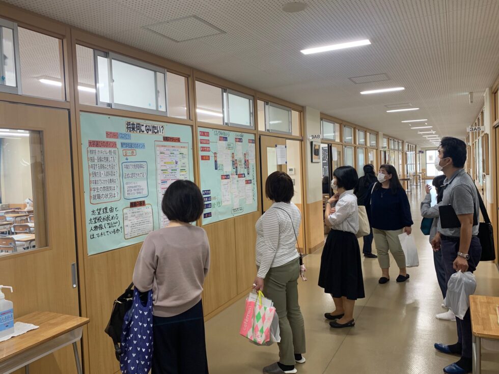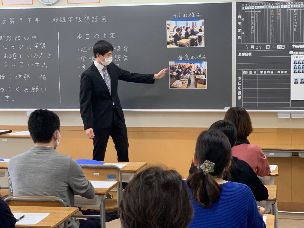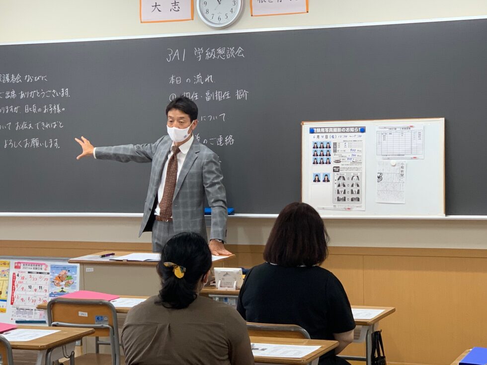 全体保護者会では、3学年担当教諭陣の紹介、山口学年主任挨拶、進路指導部長の和田先生から今後の進路指導についての説明。学級懇談会では、担任自己紹介、学級状況の報告、今後の予定などのお話がありました。今回の保護者会は、進路決定に向けての取り組み等が重点となりました。3学年は、来週から3者面談が始まり、いよいよ進路決定に向けて最終段階に入ります。保護者の皆様のご協力をいただきながら、生徒たちが納得できる進路決定ができるように全力を尽くしていきます。