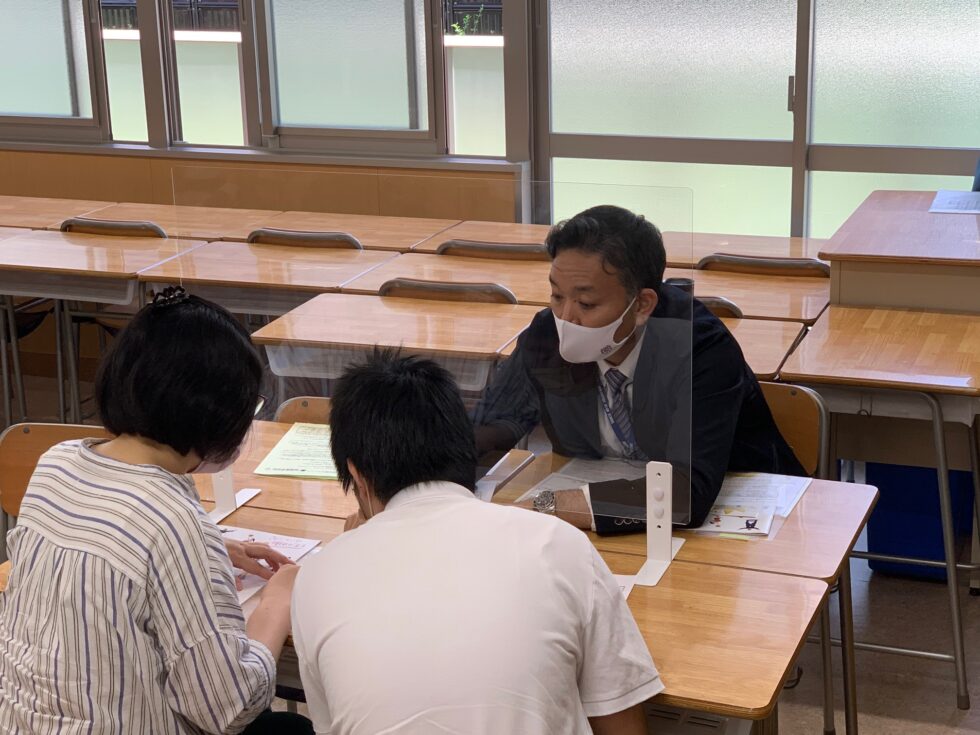 全体説明会の後、参加者の皆様は個別相談会・校内見学を行いました。個別相談会は、全体説明会とは異なり、参加者一人ひとりの成績や環境等に合わせた質疑応答の時間となりました。また、校内見学は自由に校内を見学していただき、廊下や特別教室などで待機している教員に質問する参加者の姿が多く見受けられました。