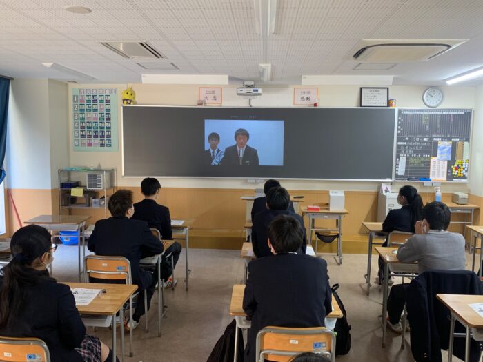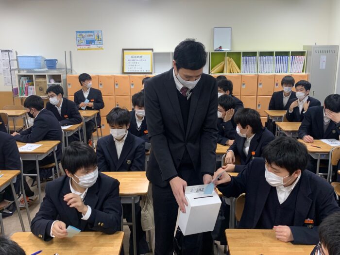 今回は、体育館で行われた候補者と応援責任者の演説会の様子をライブ配信し、各クラスで生徒たちが視聴。その後、投票が行われました。