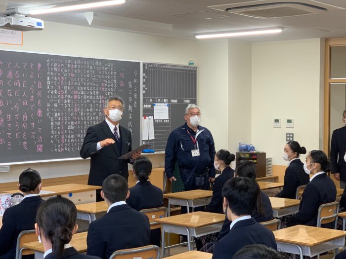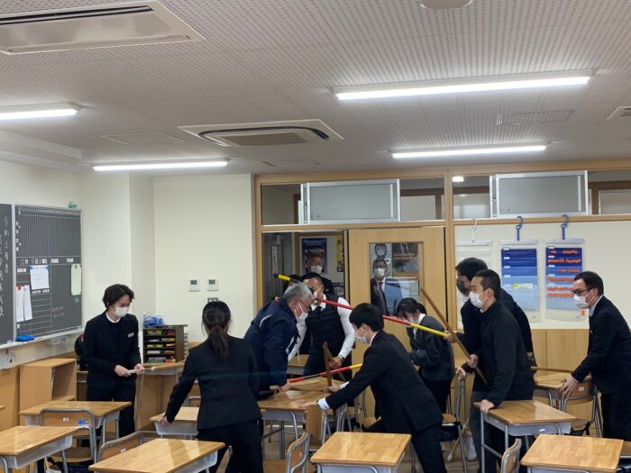 防犯訓練を実施しました トピックス 2021/12/09 9日(木)、中野警察署生活安全課スクールサポーターの方にご来校いただき、防犯訓練を実施しました。当日は、ダンス部の有志と教職員が不審者や暴漢への対応・心構え、さす股の使い方や避難方法を実戦形式で学びました。校内に不審者が侵入した時には、すばやく避難する、背中を見せない、時間を稼ぐ等を実践して、自らの危険を回避するよう指導を受けました。また、校外では危険な場所に近づかない、遠回りをしてでも安全な道を選ぶようにと教えていただきました。 前の記事へ 一覧に戻る 次の記事へ