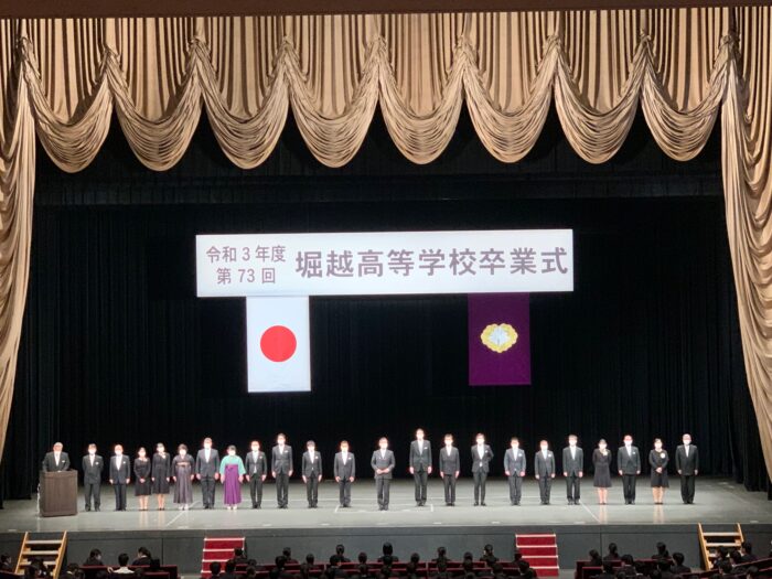 コロナ禍の中に挙行された卒業式。勝又校長が常々言葉にする「コロナに負けるな、一歩でも前へ」を実践する、絆の大切さを再認識する素晴らしい卒業式となりました。