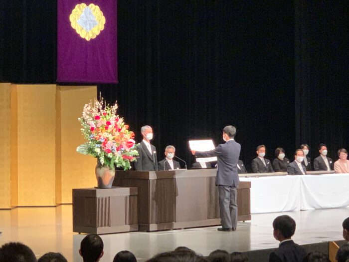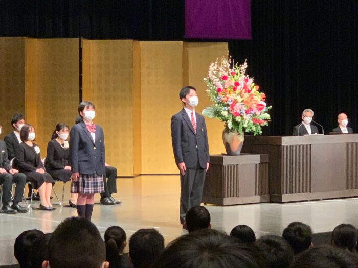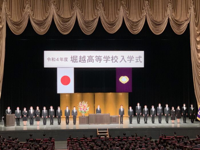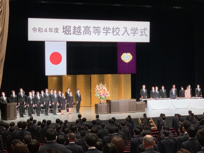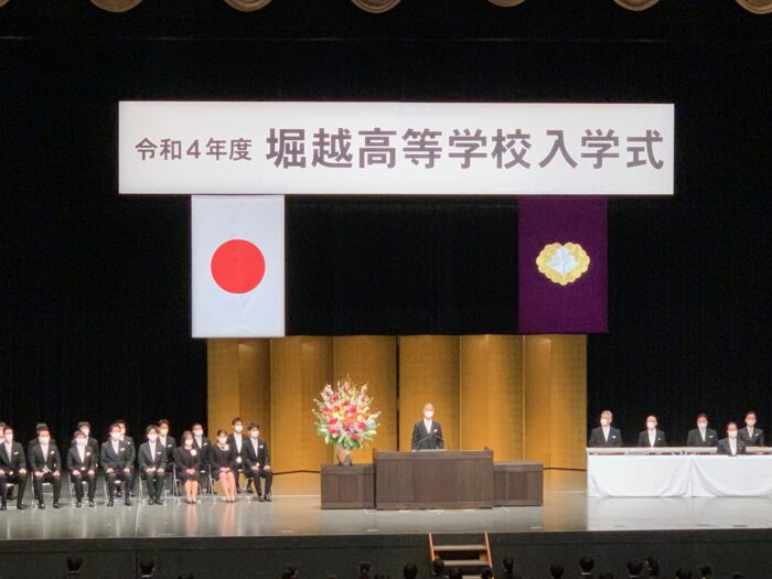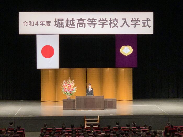 当日は開式の辞、国歌斉唱、今年度から学校長に就任した掛本先生の式辞、新入生代表による新入生宣誓、堀越正道理事長の祝辞、在校生による歓迎のことば、校歌斉唱と進行して、無事に終了しました。