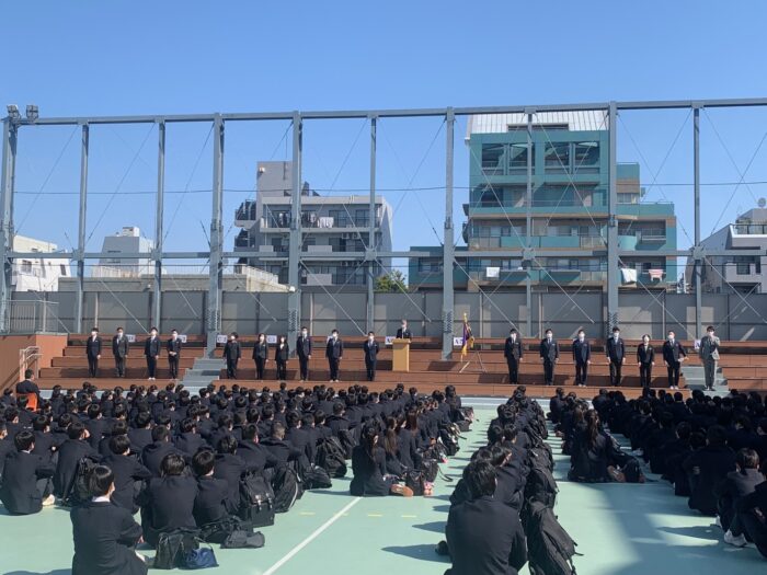 クラス替えが行われ、これから皆さんは新しいクラスメイトと一緒に学園生活を送ります。仲間の良いところをたくさん見つけて、より良い人間関係を築いていきましょう。また、1年生と接する時は、良いお手本となってください。