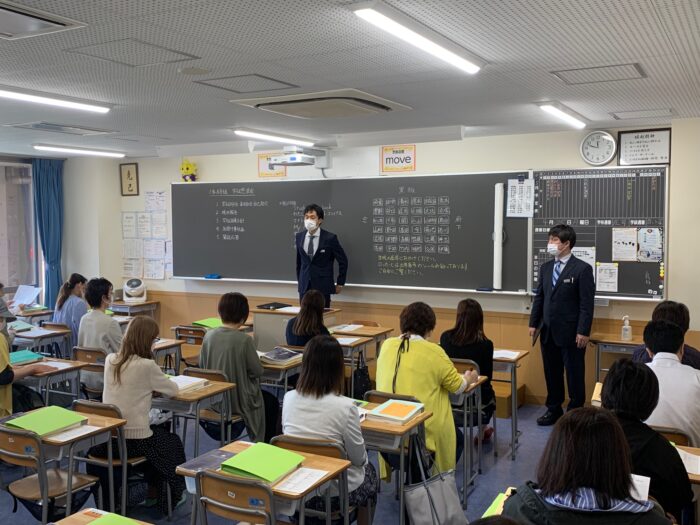 クラスに分かれた学級懇談会では、担任教員の自己紹介、現在の生徒たちの様子、クラス運営方法等が紹介されました。堀越高校は、生徒たちの健やかな成長のために保護者の皆様との連携を大切にしていきます。