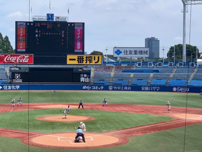 7月18日(月)、硬式野球部は神宮球場で行われた第104回全国高等学校野球選手権大会東東京大会第3回戦、対豊南戦に7対2で勝利しました。