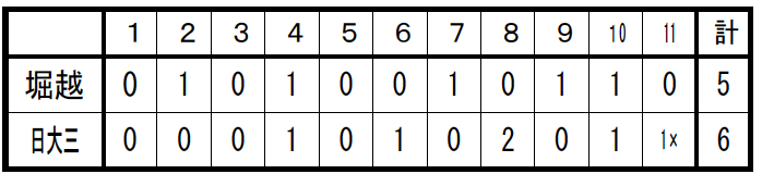 11回裏、2死2・3塁からレフト前にサヨナラヒットを打たれ、試合終了。