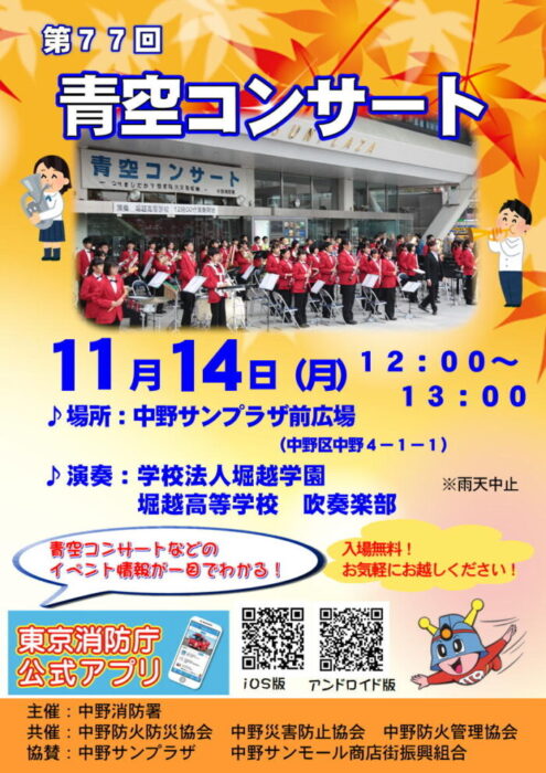 本日、中野消防署が主催する「第77回青空コンサート」に出演させていただきます。