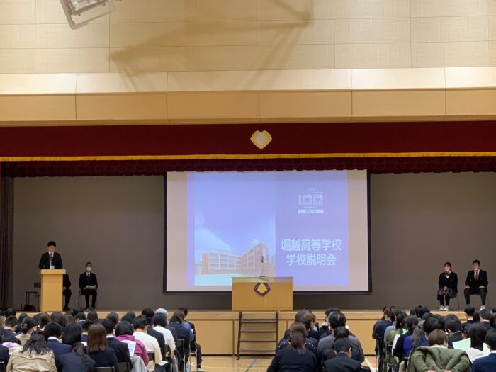 学校見学会:12月11日までの土曜・日曜、10時・11時・13時・14時、1日4回実施します。学校見学会では、堀越高校の説明・校内見学の後に個別相談を行います。中学3年の成績をご持参の方には、より具体的な受験方法などを説明させていただきます。