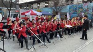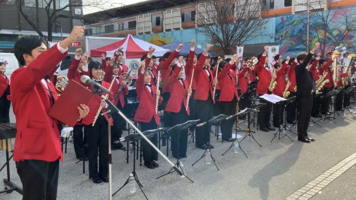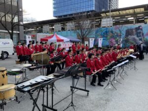 吹奏楽部は、12月11日に中野駅前北口広場で開催された、東京中野ライオンズクラブ主催の「薬物乱用防止 青空コンサート」に出演させていただきました。