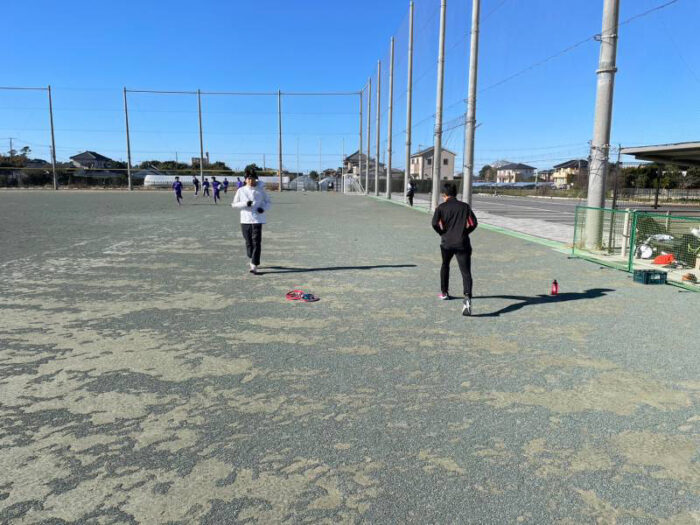 そのため、午前練は海岸から少し離れた運動場に場所を移して行いました。