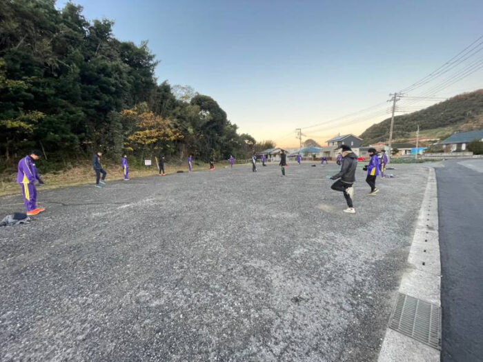 合宿最終日は前日までの風が嘘のように収まり、朝はウォーキング、体操、縄跳びをしました。