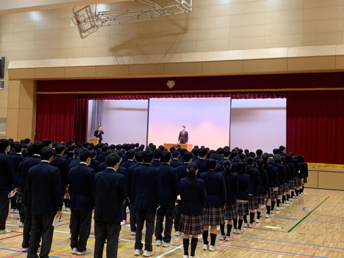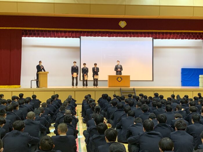 3月17日、2学年の学年集会が行われました。体育館に集合後、漢字テストの上位3クラス表彰、そして2月28日に実施した「学級新聞発表会」の上位3チームの結果発表および表彰式が行われました。表彰式後、学年主任の佐藤(智)先生から「4月から皆さんは3年生です。進路の選択、決定、卒業に向けて歩んでいきます。真剣に進路に向き合い、自分の道を掴んでください。そして、堀越生としてのプライドを持って行動する1年にしてください」とお話がありました。