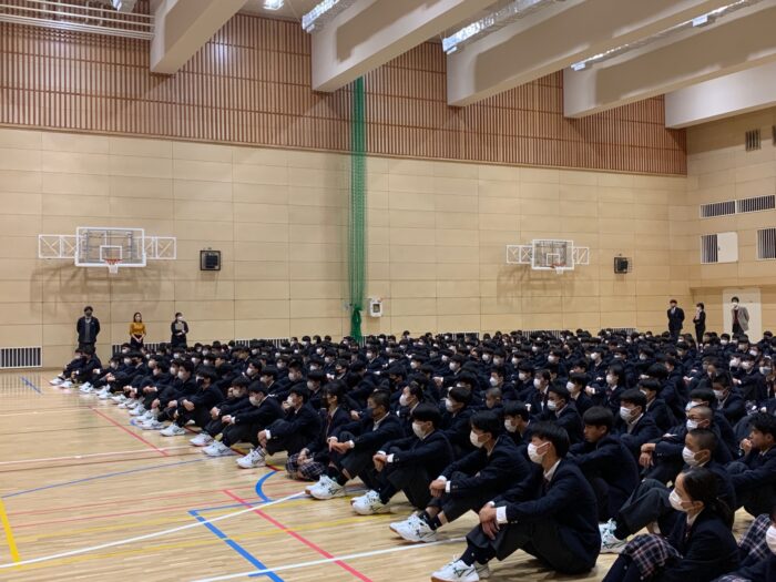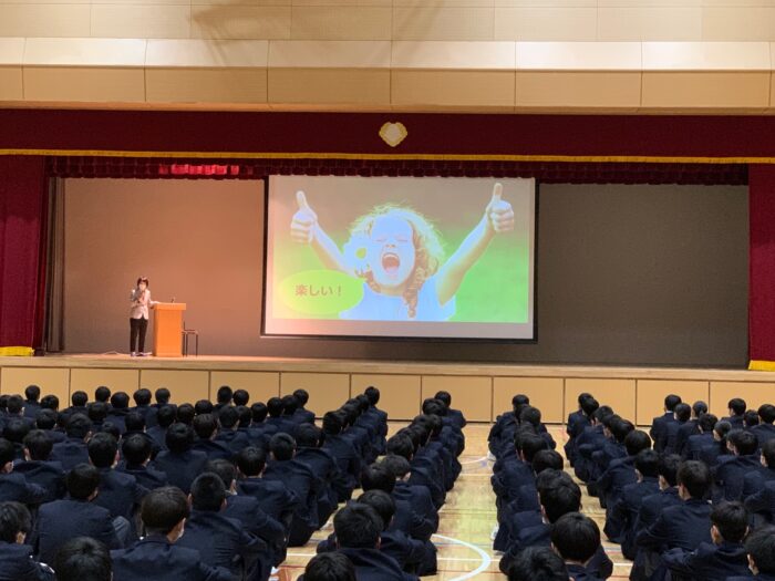 その後、生徒指導部長の山口先生から「SNSのツールは、非常に賢く進化しています。その賢いツールを利用するためには、利用する人間が賢くなければいけません。賢い人というのは、周囲の人の気持ちが分かる人です。周囲の人の話を聞き、アドバイスに耳を傾け、責任を持って行動し、SNSのツールを活用してください。それでも困った時には、先生や周りの大人に報告・連絡・相談をしましょう。決して一人で抱え込まないでください」とお話がありました。
