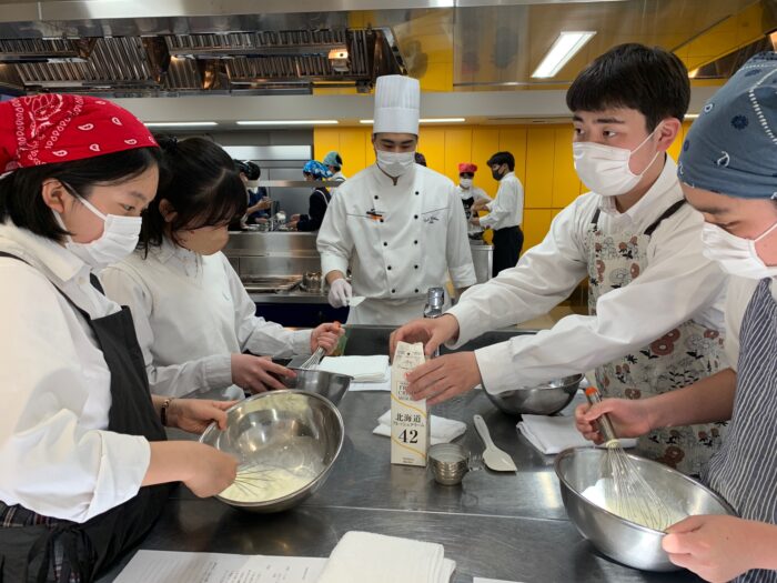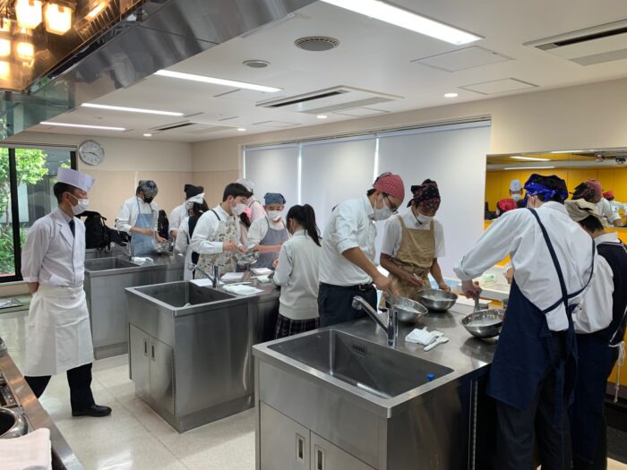 調理実習の授業は今後、月1回程度、織田学園の調理実習室で実践的な和食・洋食・中華料理の調理を体験します。