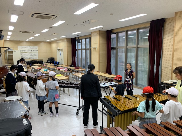 10月5日(木)、近隣の小学生6名と保護者の方2名が「どきどきわくわくたいけん」のため堀越高校を訪れました。子供たちは、校内放送で「これから教室へ行きます。よろしくお願いします」と挨拶した後、授業見学、音楽室で楽器体験、体育館見学、ホリオンとの記念撮影をしました。