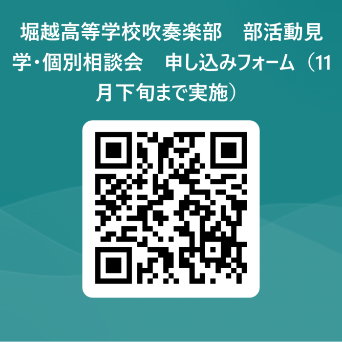 「部活動見学・個別相談会」お申し込みはこちらに入力をお願いします。下記のアドレスかQRコードから入力フォームへお進みください。