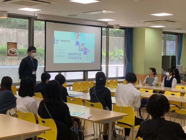 堀越高校を進路の一つとしてお考えの方は、学校見学会・学校説明会を利用して本校の様子や特徴、そして合格の基準や入学後の費用など、観て・聞いて・知ってください。当日に行われる個別相談では、入試委員が皆様の個人的な質問にお答えします。