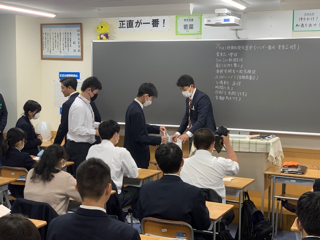 令和5年度の後期生徒会長と副会長が決定 トピックス 2023/11/13 11月9日、令和5年度の後期生徒会選挙が行われ、12日に生徒会長2年・黒川、副会長に2年・細谷、1年・今井が選ばれました。 今回の生徒会選挙は会長に1名、副会長に7名が立候補。登下校時に選挙運動を行い、9日に体育館にて全校生徒の前で演説会、教室に戻り投票が行われました。12日、結果と共に任命式が行われ、当選した3名には掛本校長から任命書が手渡されました。 生徒会の新たなリーダーが決まりました。今まで以上にハートフルな学園作りを目指して活動を続ける生徒会に期待が集まります。 前の記事へ 一覧に戻る 次の記事へ