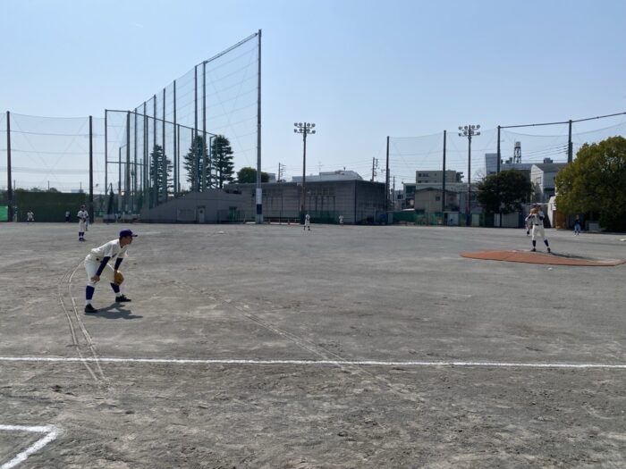 昨日、横浜商業グランドで練習試合を行いました。相手は関東大会や全国大会に出場・優勝するなどの経験をもつ強豪校です。結果は14ー1と大きく点を離され負けとなりました。
