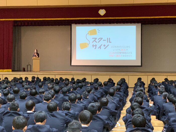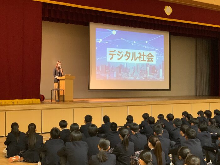 4月10日(水)、1年生を対象としたネットリテラシー講座を行いました。当日は、SNSの専門家をお招きして『SNSの無限の可能性』と『潜んでいる危険』について具体的な事例をあげて分かりやすく教えていただきました。「SNSの情報発信には責任が伴います。すでにSNSを利用している人も多いと思いますが、今一度自分の使い方を見直し、SNSを正しく理解して使いこなすようにしてください。万一被害にあったときには、落ち着いて、証拠を残し、大人に相談しましょう」と指導がありました。