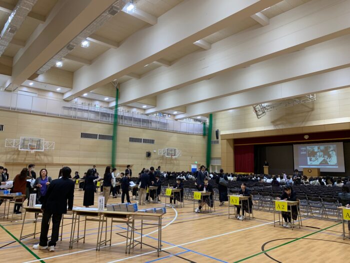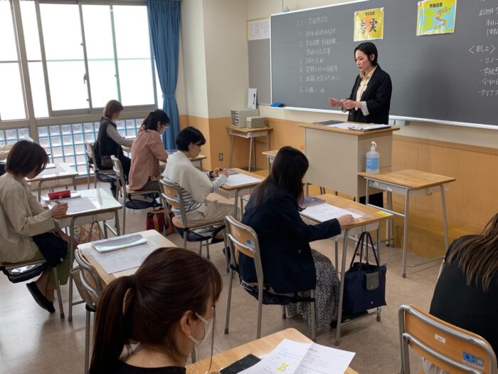 20日(土)、第1学年の保護者会を行いました。体育館で行われた全体保護者会では学年主任の佐藤先生が挨拶。続いて教務部長の柿沼先生から朝学習・総合的探究の時間について等の説明や検定試験への挑戦推奨のお話。生徒指導部長の山口先生から生活習慣の確立について、SNSの利用に関する注意事項、そして子供たちが社会を生き抜く力を育むために“お礼と謝罪”を速やかに言葉にできる習慣を身に付けさせましょう、とお話がありました。