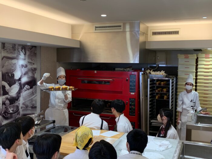 ライフデザイン 調理製菓 トピックス 2024/05/09 9日(木)、ライフデザイン「調理製菓」の授業で今年初めて織田学園を訪れ、マドレード作りに挑戦しました。当日は織田学園の製菓専用教室に出向き、製菓専門の先生の指導を受け、グループに分かれて仲間と協力しながらマドレードを焼き上げました。美味しく焼きあがり、大満足でした。 前の記事へ 一覧に戻る 次の記事へ