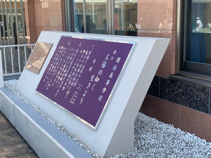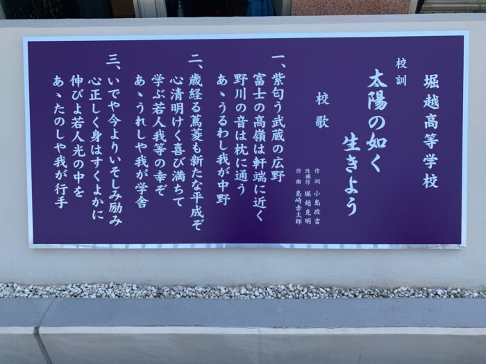 校歌のプレートを設置 トピックス 2024/05/11 11日(土)、校門を入って右手にある堀越克明先生像の横に、堀越高校のイメージカラーである紫色の地に白文字で製作された校歌のプレートを設置しました。 前の記事へ 一覧に戻る 次の記事へ