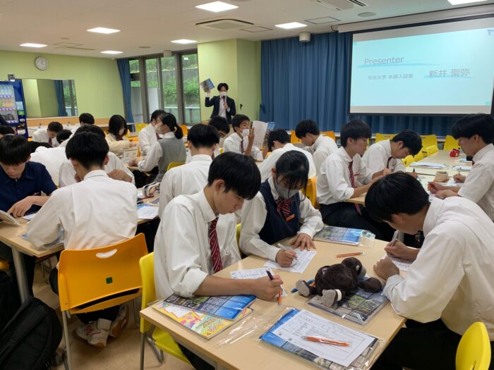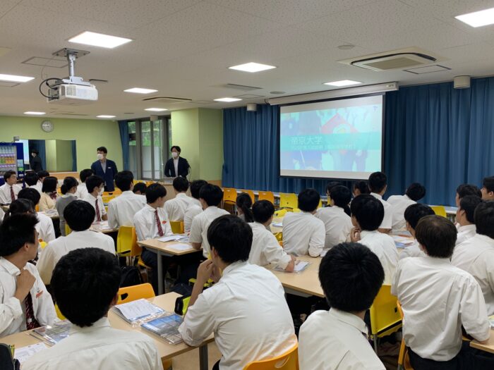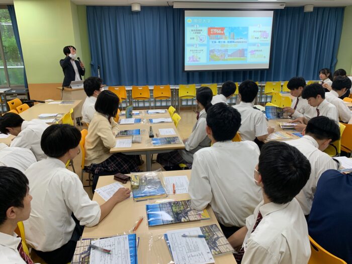 校内大学説明会 トピックス 2024/06/21 6月17日(月)から21日(金)の放課後、3年生を対象に校内大学説明会を行いました。 9大学の入試広報のご担当者にご来校いただき、大学と学部・学科の紹介、2025年度入試内容、受験に向けてのアドバイスをいただきました。 3年生は間近に迫った志望校決定に向けて、ご担当者の説明に真剣に耳を傾けていました。 前の記事へ 一覧に戻る 次の記事へ