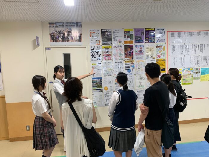 体育館での全体会終了後、個別相談と校内見学を実施しました。人気の『生徒による校内ツアー』も実施。参加者の皆様は在校生のお薦めポイントに耳を傾けながら、そして在校生に高校生活の様子を直に質問しながら、楽しく校内を見学していました。