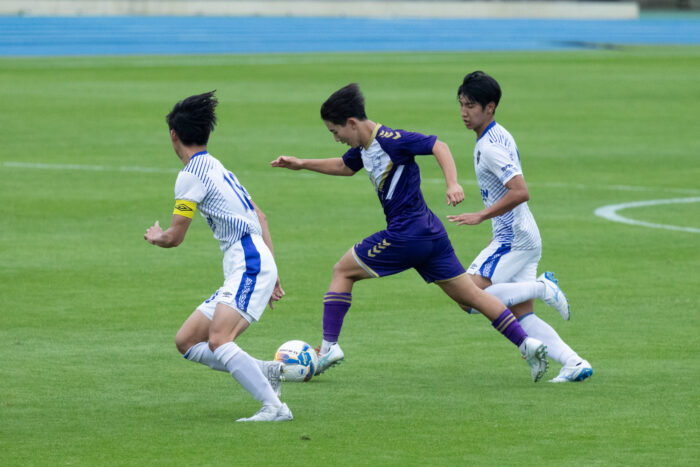 対実践学園は、前半2分に幸先よくFW三鴨奏太のシュートで先制。後半に入ると実践学園が12分、20分にフリーキック、23分にコーナーキックと攻撃を強めると堀越は31分にPKを与えてしまい同点に追いつかれる。終了間際、堀越は猛攻を仕掛けるが、惜しくも枠に嫌われ得点にはならず延長戦に突入する。延長前半7分、実践学園のゴールで1点を追いかける展開となるが、延長前半のアディショナルタイムにDF森 奏のヘッドで同点として延長後半へ。一進一退のゲームの中、延長の後半5分に堀越がPKを獲得。これをFW三鴨奏太が右隅に決めて3対2。そのまま試合終了のホイッスルが鳴り、2年連続全国大会出場を決めた。