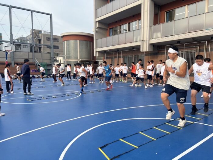 月(オフ) 火・水(屋上) 木(トレーニング) 金(校庭) 土・日・祝(校庭・外部)