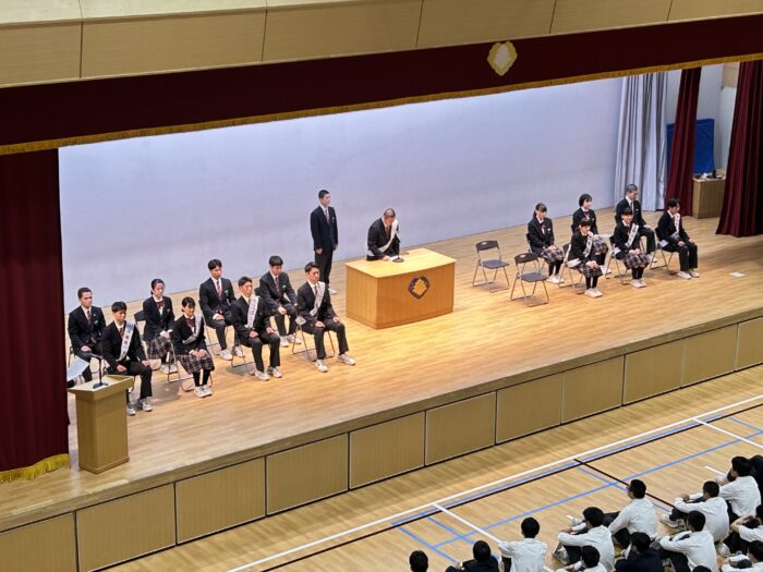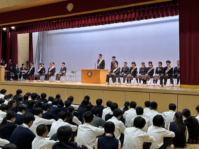 16日に生徒会長3年・米光、副会長に2年・片桐、2年・長浜が選ばれました。