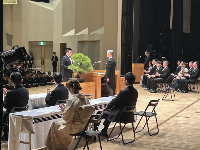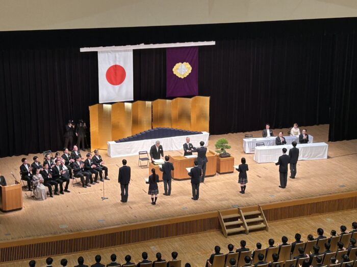 卒業おめでとうございます。千利休が唱えた茶道の精神「和敬清寂」とは、相手を思いやり敬い、清らかで安らかな心を持って生きることを表しています。物質的に豊かな現代社会においても、人とのつながりを忘れず、自分の主張だけでなく相手を理解する姿勢が求められます。卒業生の皆さんには、誰に対しても温かく公平に接し、「あなたがいてよかった」と言われる存在へ成長してほしいと願っています。新たな道を力強く歩み出す皆さんの前途を心より祈念します。