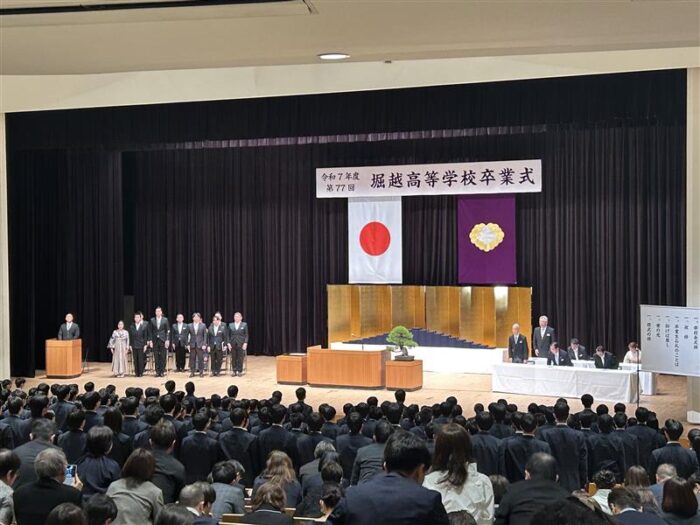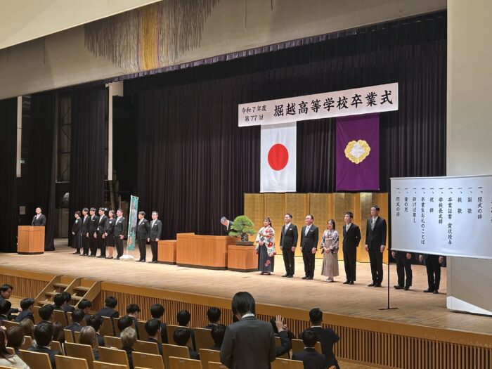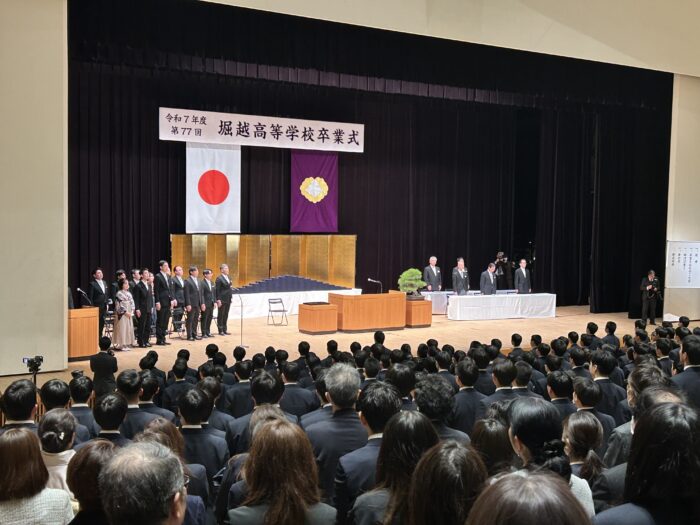 第2部では、学年主任の小沢 尚より卒業生へ温かいメッセージと熱いエールが贈られ、その後、最後のホームルームを実施しました。学級担任から卒業証書が一人ひとりに手渡され、かけがえのない時間となりました。卒業生たちは、堀越高校で過ごした3年間の思い出と誇りを胸に、それぞれの未来へと巣立っていきました。