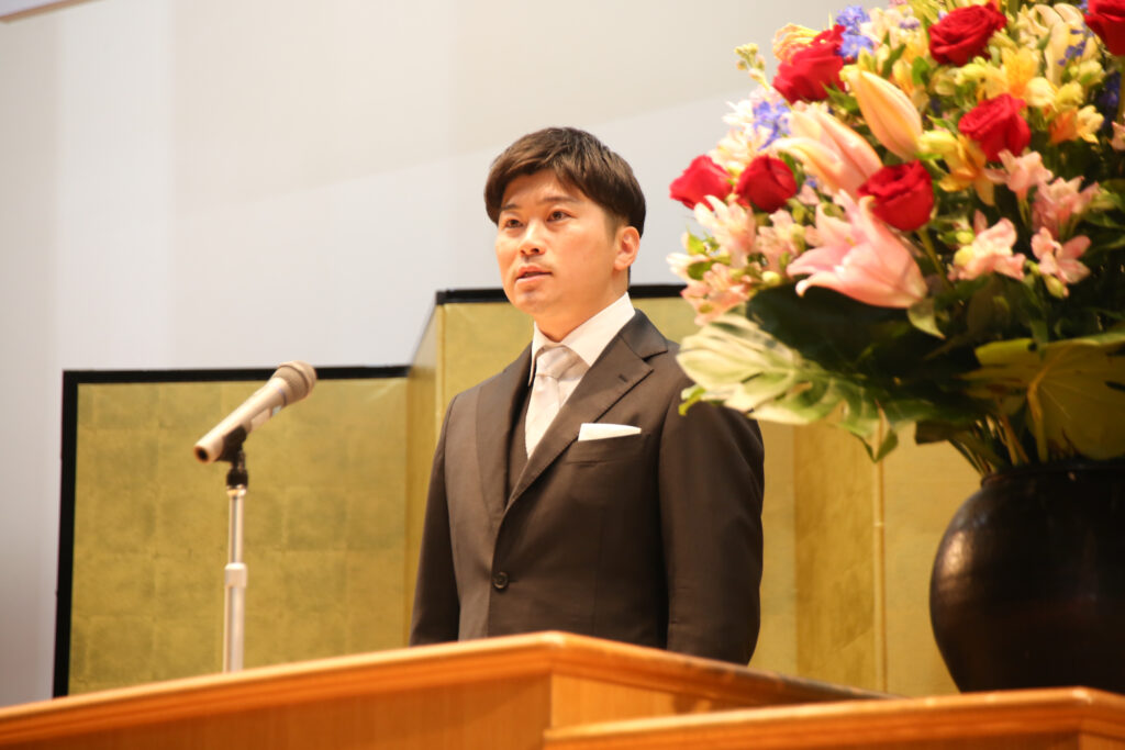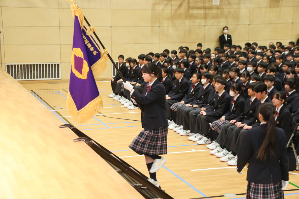 入学式後には、掛本校長より1学年の担任教員・学年付教員の紹介が行われました。続いて、学年主任の尾﨑先生から新入生へ激励のメッセージが送られ、在校生からもこれからの学校生活に向けたエールが贈られました。最後には、本校の歩みを振り返る100周年記念動画が上映され、これから始まる高校生活への期待が一層高まる締めくくりとなりました。