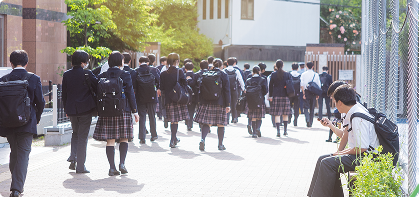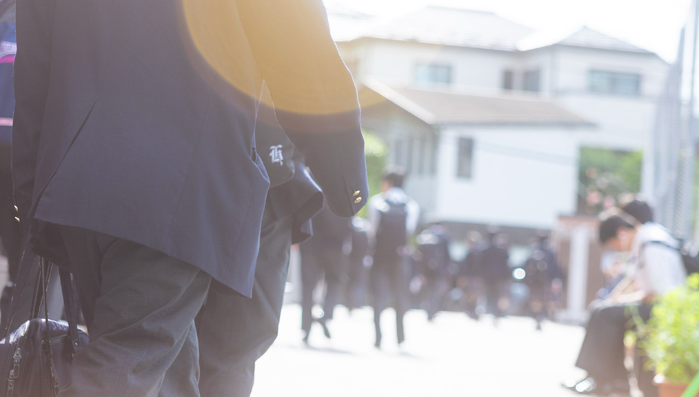 堀越高等学校の1日は、校門前での一礼から始まります。